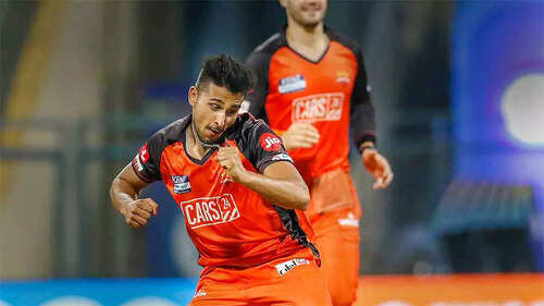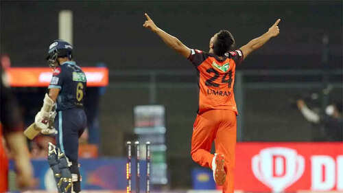 <p>Umran Malik got the key wickets of skipper Hardik Pandya (10), Wriddhiman Saha (68), and David Miller (17) to rattle Gujarat. (BCCI/IPL/PTI Photo)</p>