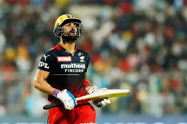 In the second qualifier, Kohli chased a fast, rising delivery from pacer Prasidh Krishna, which was wide outside the off-stump, giving a simple catch to Rajasthan Royals skipper Sanju Samson behind the stumps.
