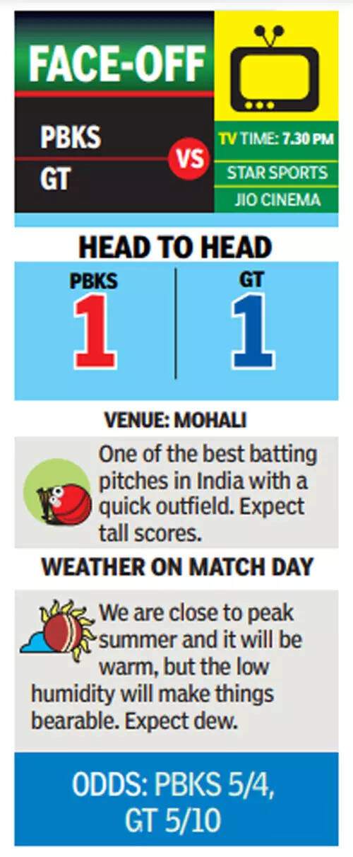 GT, currently fourth on the table with four points from three games, still have a great chance to top the chart, but for that they will have to collectively come together against PBKS, who are fast emerging as one of the most difficult sides to surmount.