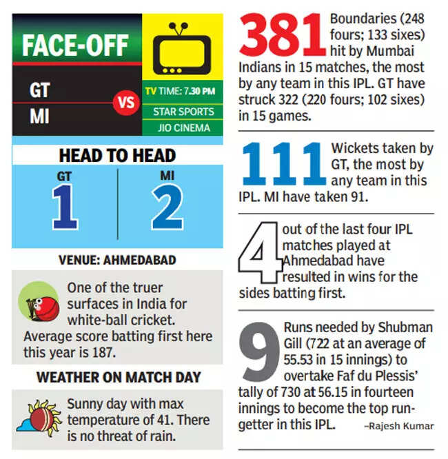 AHMEDABAD: Playing the second qualifier is not the goal when a team goes through the training camps ahead of the IPL campaign. It does, however, beat the alternative. For seven teams, the season is over and one has entered the final. The rest two — Gujarat Titans (GT) and Mumbai Indians (MI) — have a second chance when they clash at the Narendra Modi Stadium here on Friday.