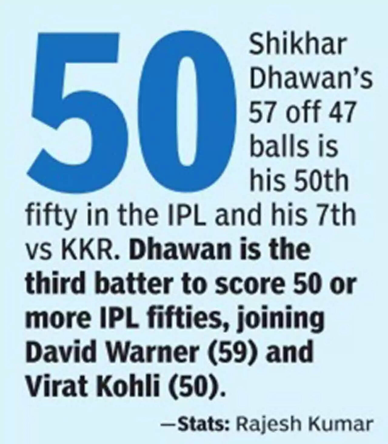 <p>Dhawan kept up the charge despite getting little support from the other end as he reached his third fifty of the season before departing in the 15th over. </p>AP8/10:Nitish Rana