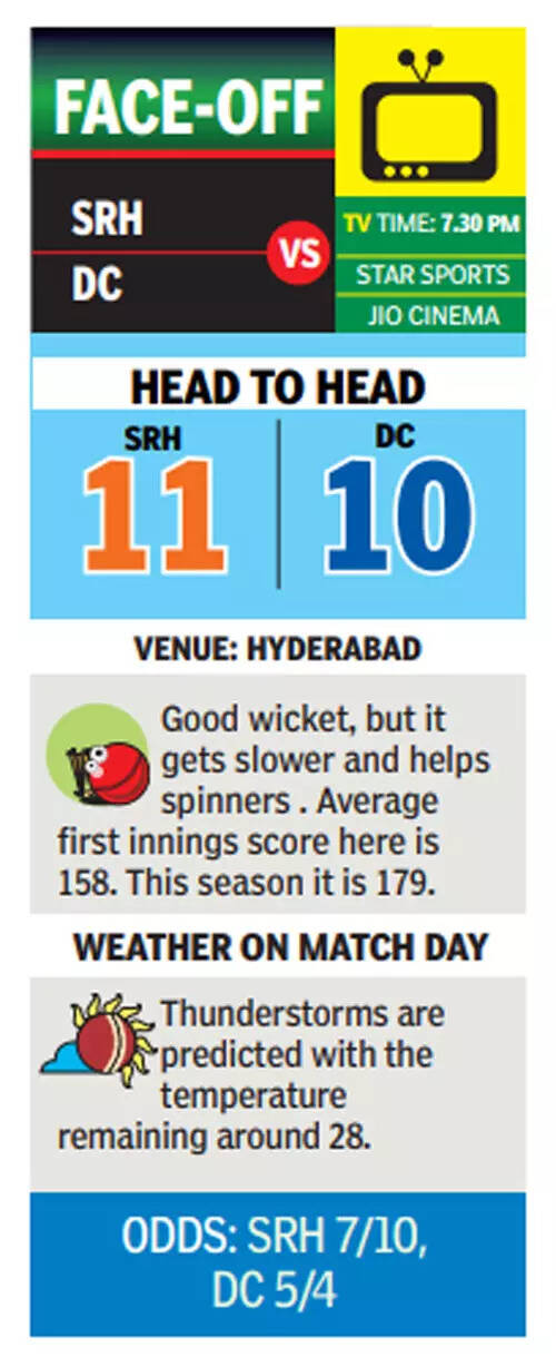 HYDERABAD: The league phase of the Indian Premier League (IPL) is nearing its halfway stage. The front-runners have set early pace but Sunrisers Hyderabad and Delhi Capitals, who will battle it out on Monday, are lagging way behind.