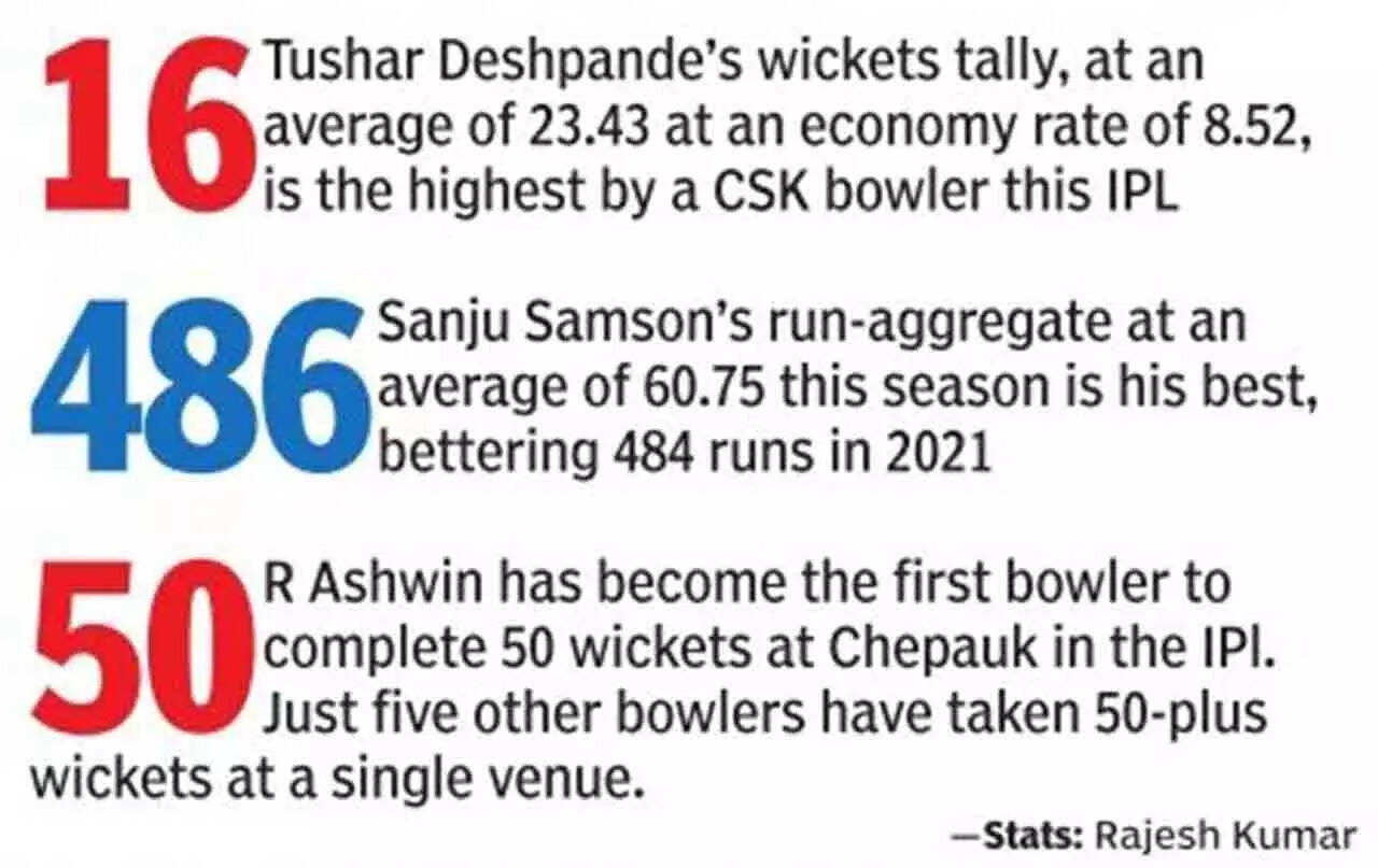 With the asking-rate never too threatening, CSK batters played out the dangerous leggie Yuzvendra Chahal without taking too many risks while RR missed a trick by not using South African left-arm spinner Keshav Maharaj as their impact sub. Instead left-arm medium-pacer Nandre Burger was used but the South African lacked the experience to make any impact on a pitch like this against quality CSK batters.