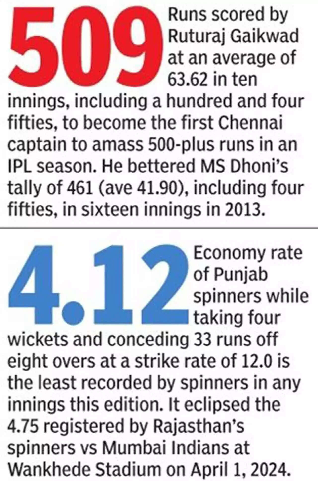 Ruturaj stitched a 64-run stand with his opening partner Rahane, but their partnership hardly troubled Punjab barring the last phase of the Powerplay.