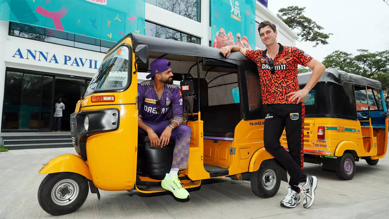 From the Anna Pavilion at the MA Chidambaram Stadium in Chennai to one of city's most famous hangout spots, the Marina Beach, skippers of the two finalists of IPL 2024 reached for the official photoshoot with the trophy on the famous yellow tuk-tuk.