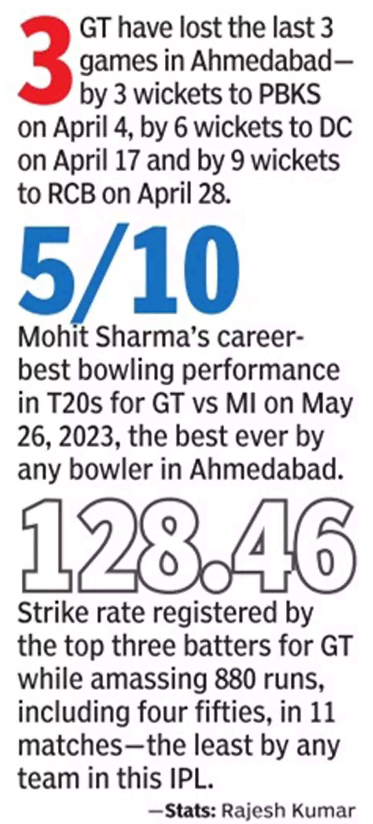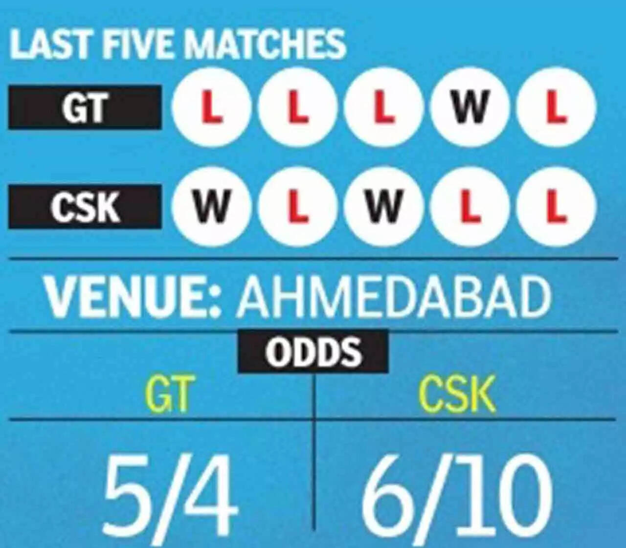 AHMEDABAD: The last time Gujarat Titans (GT) and Chennai Super Kings (CSK) clashed in an Indian Premier League (IPL) match in Ahmedabad, it was the final of the last season's tournament and the match, postponed by a day because of rain, culminated on the third morning at 1.35 am, with CSK winning their fifth title.