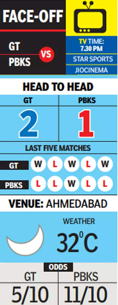 AHMEDABAD: Sustaining the winning momentum will be the aim of Gujarat Titans as they take on Punjab Kings, who will be looking to arrest the losing slide, at the Narendra Modi stadium in Ahmedabad on Thursday.