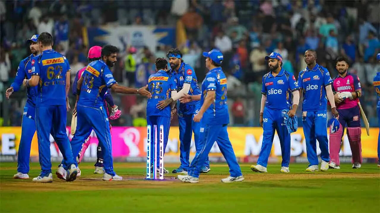 Earlier, complimenting the brilliant effort of their bowlers, RR fielded superbly, taking as many as eight catches. MI's plight would've been worse but for a 56-run fifth wicket partnership in 36 balls between skip per Hardik Pandya (34, 21b, 6x4) and Tilak Varma (32, 29b, 2x6).
