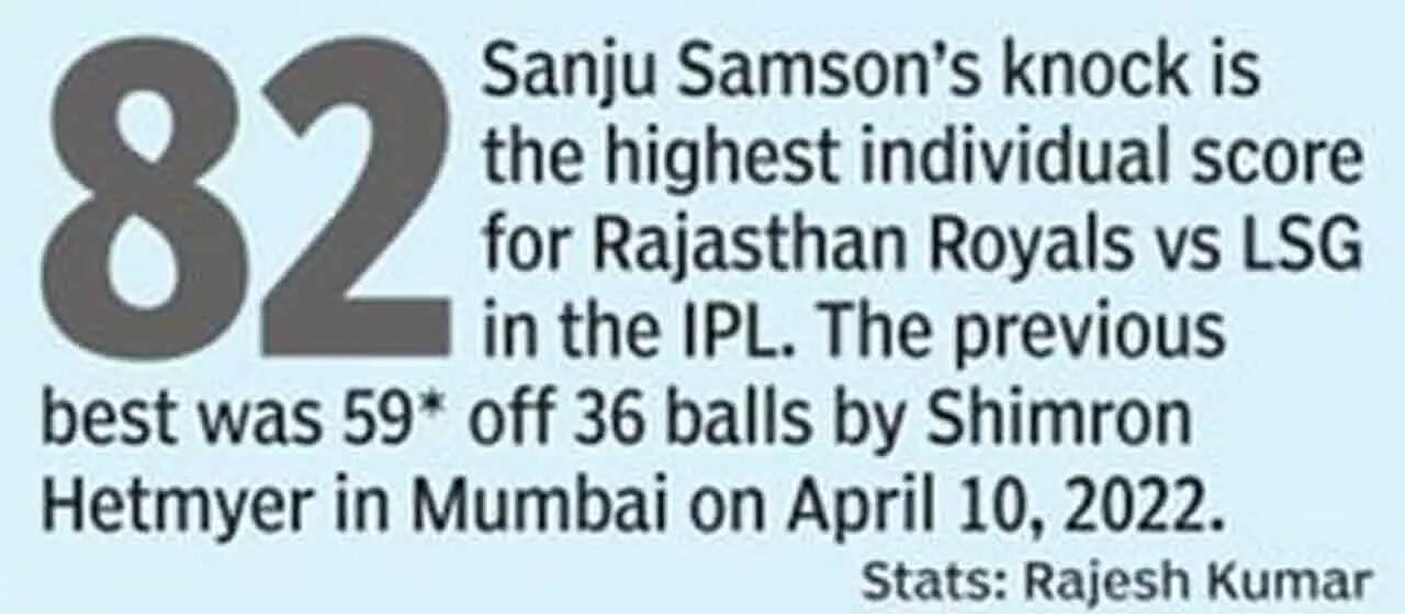 JAIPUR: Rajasthan Royals tasked Sandeep Sharma with a tough job - to stop the growing partnership of 85 off 51 balls between KL Rahul (58 off 44 balls) and Nicholas Pooran (64 not out off 41 balls) as Lucknow Super Giants (LSG) needed 49 from 24 balls. The seamer did not disappoint and eliminated the threat in the 17th over with Rahul's wicket.