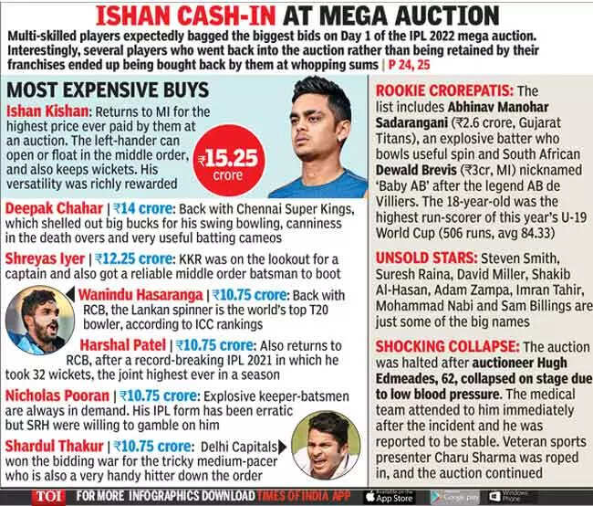 The southpaw is also now the fourth most expensive player of the league. MI had to see off frenzied bidding from Punjab Kings, Sunrisers Hyderabad and Gujarat Titans to ensure the wicketkeeper-batsman returned to their fold.