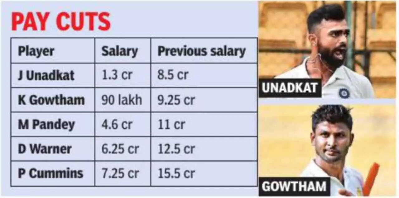 BENGALURU: At the end of the last IPL auction, players like pacer Jaydev Unadkat and off-spinner K Gowtham hit pay dirt as franchises upped the stakes to buy them. This year, the two players, who figured in the auction on the second day, took massive pay cuts.