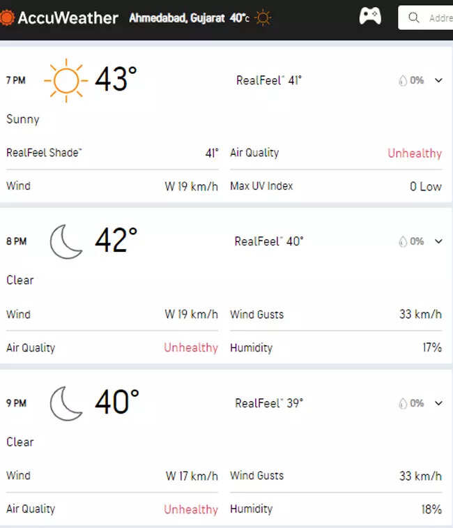 NEW DELHI: All eyes will be on the Ahmedabad weather forecast as the much-anticipated IPL 2024 Qualifier 1 clash between Sunrisers Hyderabad and Kolkata Knight Riders at the Narendra Modi Stadium is scheduled for Tuesday.
