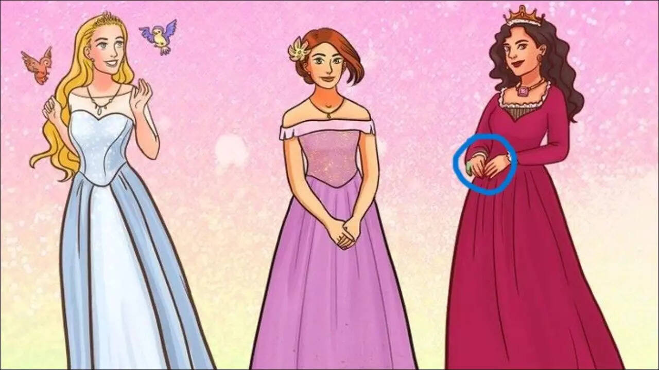 Solution: Something odd about the princess on the right catches the eye. Look at her fingers. On her right hand, one finger seems green while the others are normal. She is the alien among the three princesses. Solving puzzles like this one does not measure your intelligence but rather your attention to detail. If you want to test your IQ, consider taking an IQ test. In the meantime, have fun solving more exciting puzzles like this one.