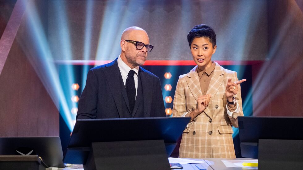 In another host twist, Brown and Kish join the show’s judges — Nilou Motamed, Andrew Zimmern and one celebrity — at the judging table. “There we can continue the conversation, maybe even steer it,” says Brown.