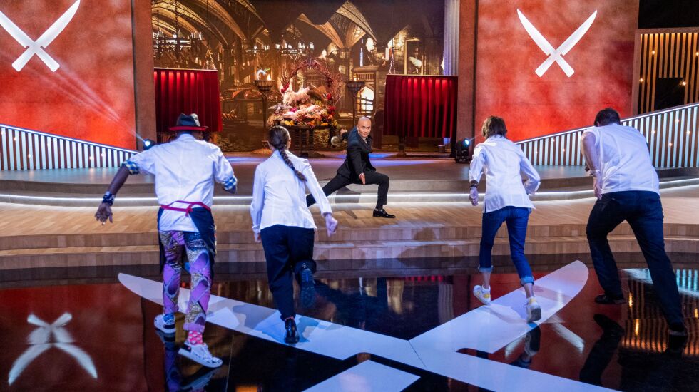 “Iron Chef: Quest for an Iron Legend” is now streaming an 8-episode first season, shot in a new Los Angeles Kitchen Stadium with familiar basics — the show’s elite Iron Chefs take on deadline cooking challenges against rival chefs with meals involving a secret ingredient announced by The Chairman (with actor Mark Dacascos reprising the role).