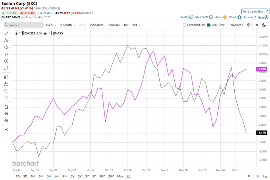Despite this, shares of the Chicago, Illinois-based company have declined 9.5% from its 52-week high of $48.51. EXC stock has risen 1.3% over the past three months, underperforming the Nasdaq Composite’s ($NASX) 8.3% return over the same time frame.