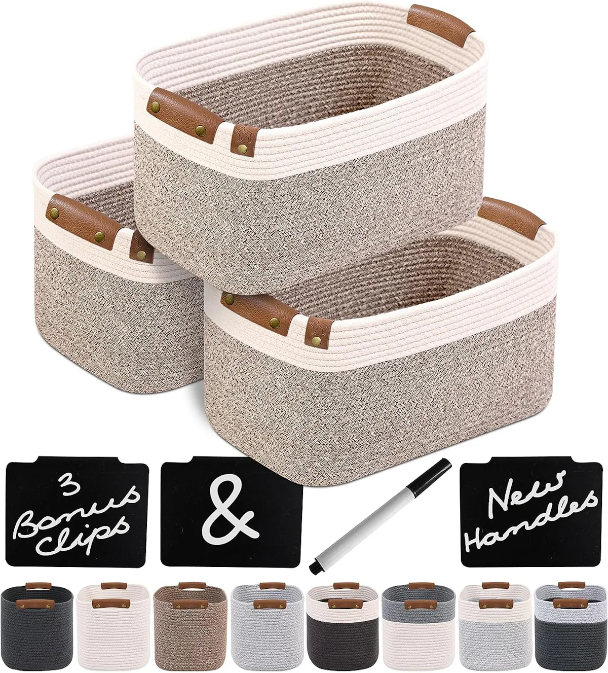Cotton rope baskets are kind of the unsung heroes of home storage. They soft-sided design makes them especially good for odd-shaped items or things that could benefit from a little squish and stretch, and they look way more aesthetically pleasing than boxes. These baskets are sold in a pack of three, have a generous 22-liter capacity, and come with convenient built-in handles.