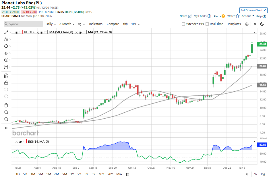 Investor enthusiasm for Planet Labs stock has been very strong, reflected in the monster rally in its share price. Shares of this space technology company, which provides daily satellite imagery and advanced geospatial data, have surged more than 620% over the past year as markets recognize the breadth of its applications. Planet’s data is increasingly used across sectors such as agriculture, defense and intelligence, energy and utilities, and forestry, serving both commercial customers and government agencies worldwide.