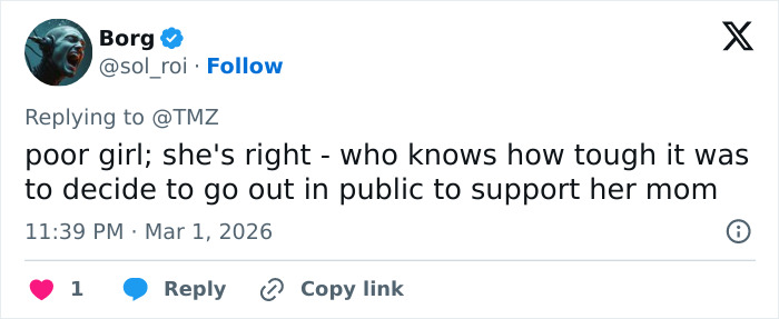 Times of London columnist Hadley Freeman described the moment bluntly, writing that even someone unfamiliar with the Osbournes would have been “extremely bewildered and alarmed by why this cadaverous-looking woman was up on stage, next to her similarly frail mother, instead of under strict medical care.”
