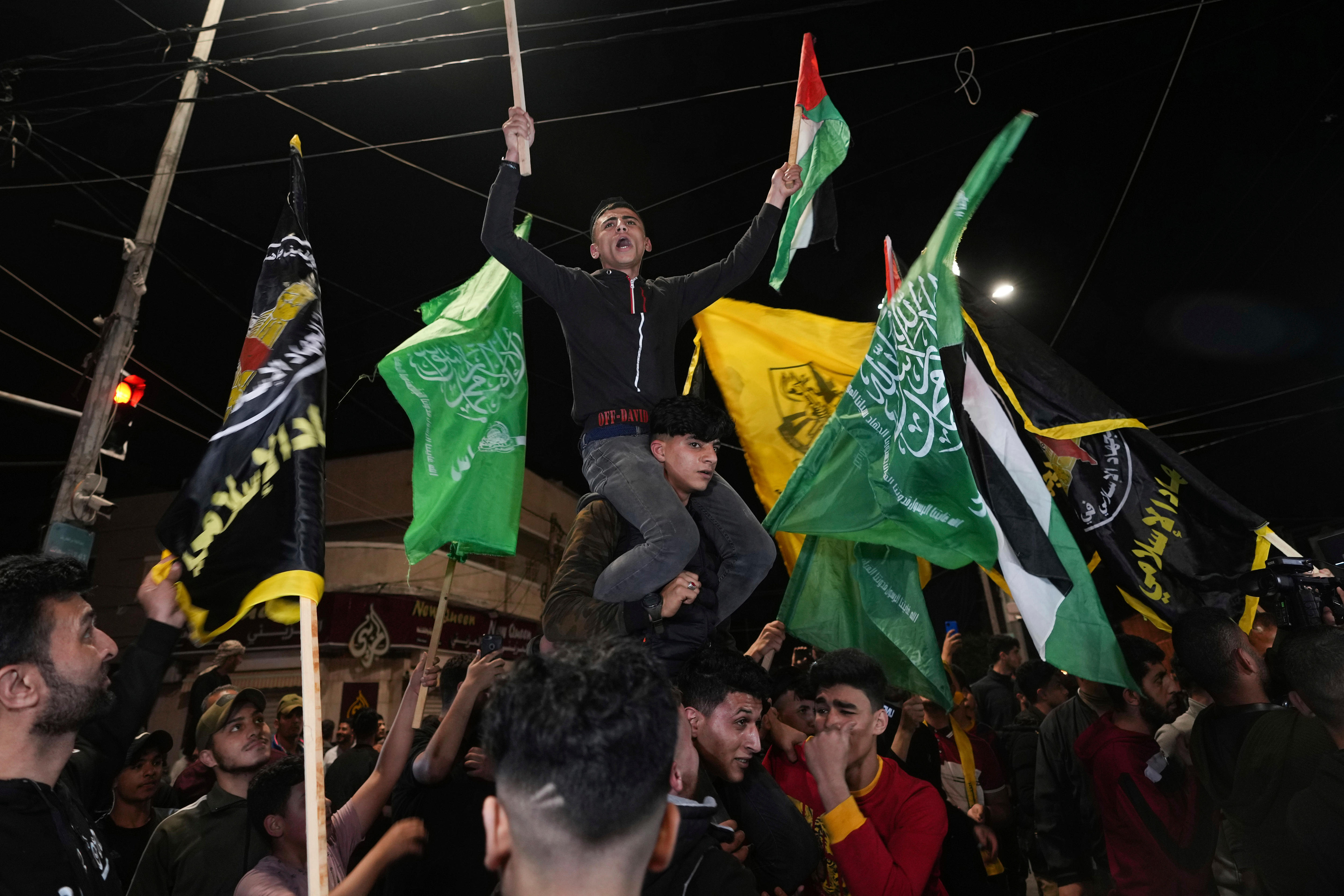 Streets that had been desolate in recent days quickly teemed with people revelling in the ceasefire, waving Palestinian flags and flashing victory signs from speeding vehicles.