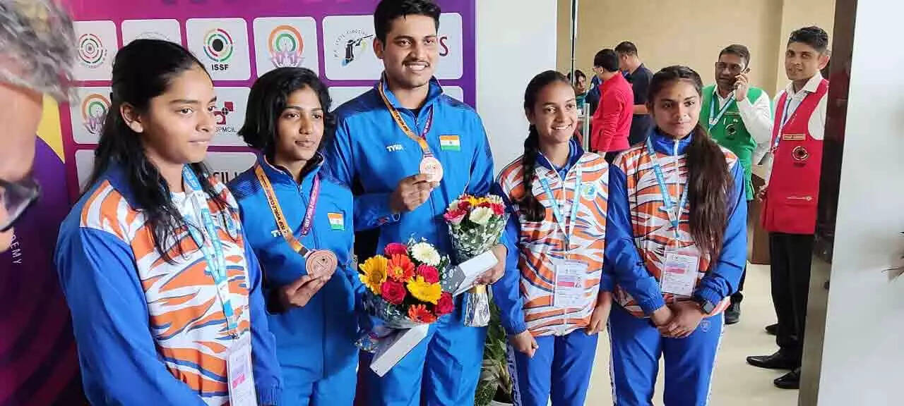 In the air rifle mixed team event, India's world champion Rudrannksh Patil and his partner Narmada Nithin Raju qualified for the bronze-medal match, where they defeated their Chinese opponents Qiongyue Zhang and Haonan Yu comfortably with a 16-8 margin.