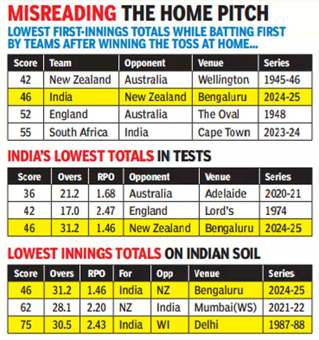 BENGALURU: His decision at the toss backfired. He managed two runs during his laboured 30-minute stay at the crease. His team tumbled for a record-low score. He was guilty of putting down a regulation catch and a half chance. Being Rohit Sharma wasn’t easy on Thursday.