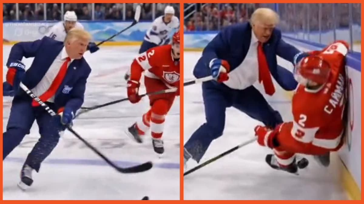 Following the buzz surrounding the Winter Olympics, Trump decided to clumsily insert himself into the sporting competition with some rather cringey AI. The video depicts him dominating on the Hockey pitch, gliding on the ice and handling the puck with ease. He brutally tackles the opposing team, which happens to be Canada, (one of the many, many countries Trump is beefing with), and eventually he throws down his gloves and just starts beating on the Canadian players.