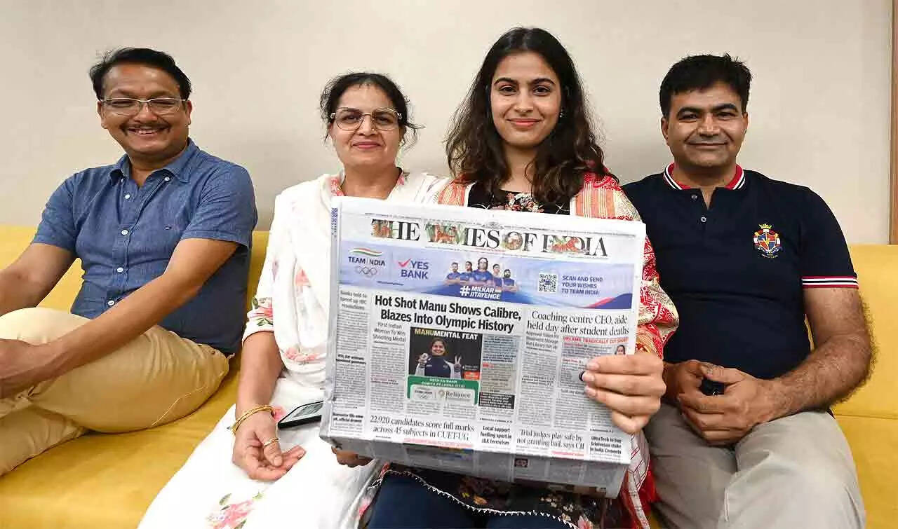 "I always asked God for a daughter, and I vowed that if I had one, I would ensure she would do something that would go down in history," Manu's mother, Sumedha Bhaker told TOI. Manu's father, Ram Kishan, recounted that Manu was always a natural sportsperson. "One day she'd be boxing, one day she'd be into karate. She used to be playing something or the other all the time." Was it difficult to encourage their daughter's sporting interests in a conservative environment, TOI asked.