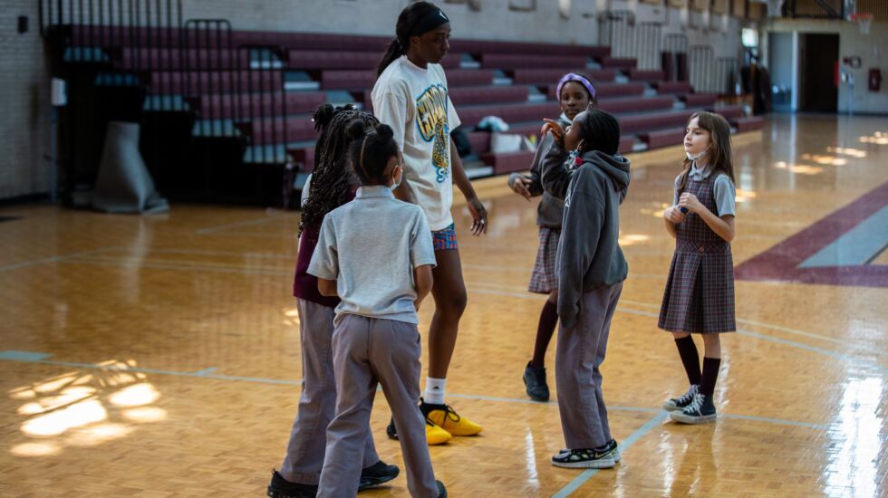 But in an instant, a flood of students surged through the door and toward the 2021 WNBA Finals MVP.