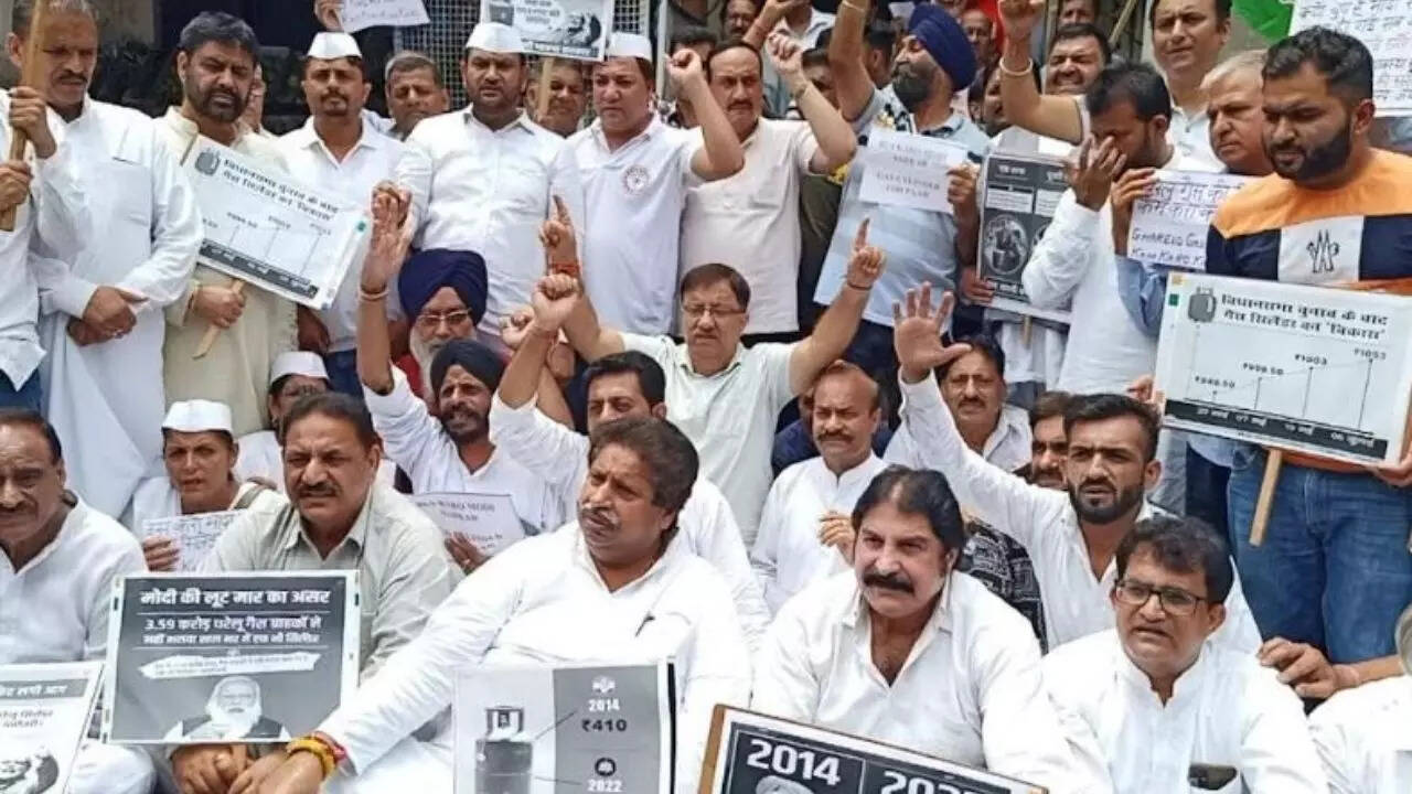 "This was the fourth hike in LPG prices this year when LPG now costs Rs 1,100 per 14.2-kg cylinder in the national capital," protesters said.