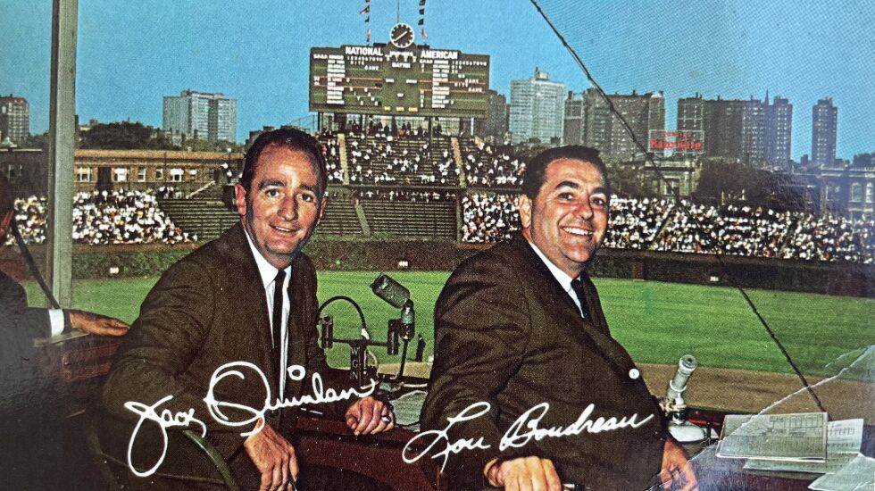 WGN morning-show host Bob Sirott also was inspired by Quinlan to become a broadcaster. He grew up on the North Side listening to Quinlan and analyst Lou Boudreau on WGN. He still has Quinlan’s autograph and a postcard of the two broadcasters that was a consolation prize for losing a kids’ contest to join them in the booth.