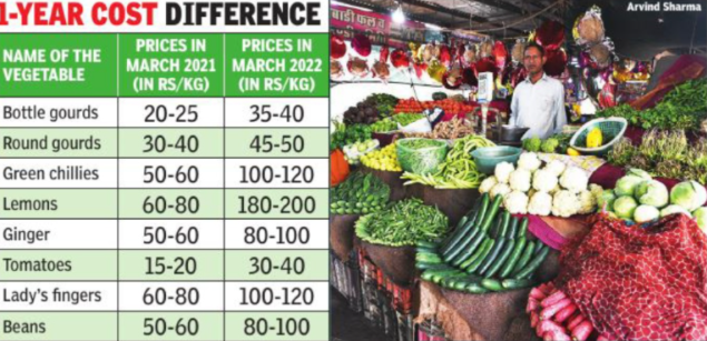 JAIPUR: There has been a continuous rise in the prices of vegetables due a rise in fuel prices and abrupt weather changes. Price of lemon has touched Rs 200 per kg and prices of every other vegetable is not less than Rs 40 per kg.