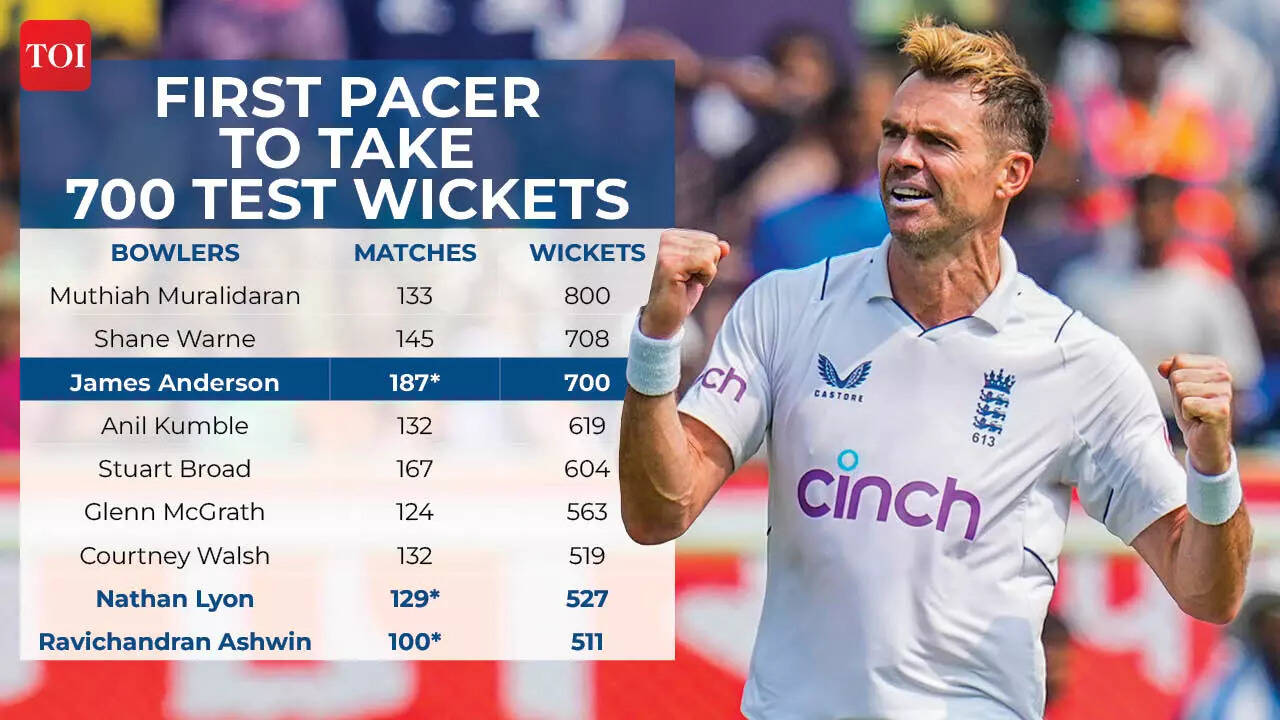NEW DELHI: James Anderson of England became just the third bowler in world cricket history to take his 700th wicket in a Test match on Saturday.