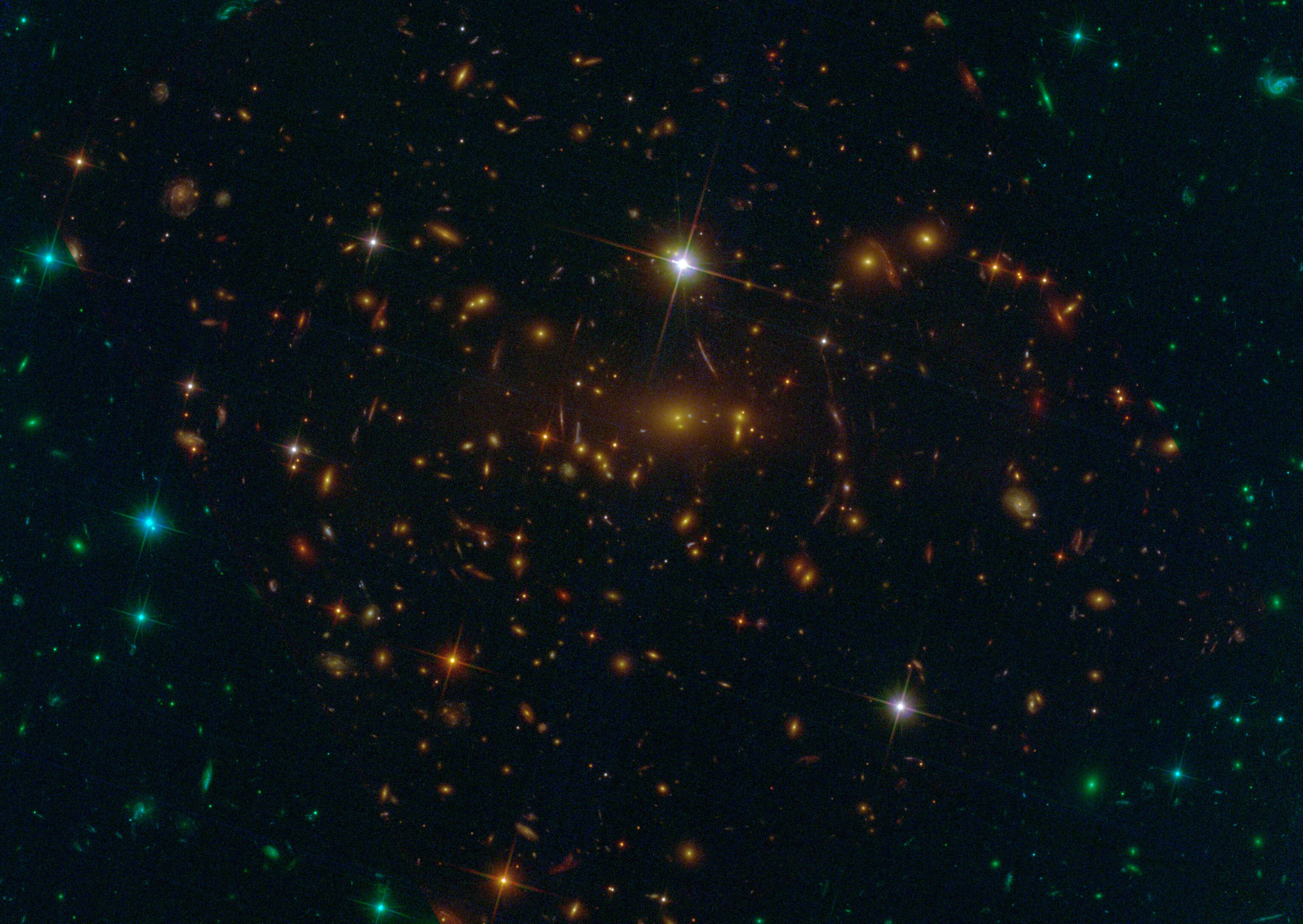 This area contains a number of large galaxy clusters that sit between us and more distant galaxies and stars.