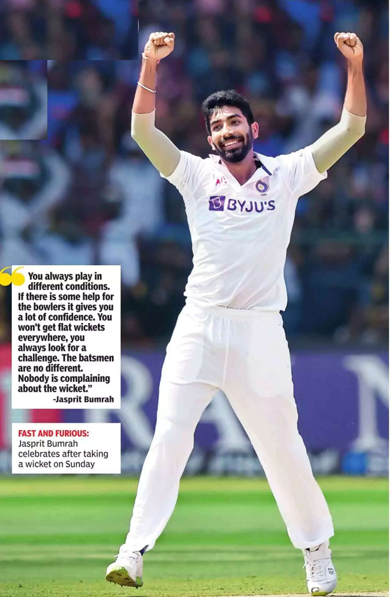 On Sunday at the M Chinnaswamy stadium, he allowed himself a celebration, and he had more than one reason to do so. The 28-year-old, a tireless worker and a magician with the ball, reaffirmed his status as the lynchpin of the Indian bowling attack and a pacer destined for greatness.