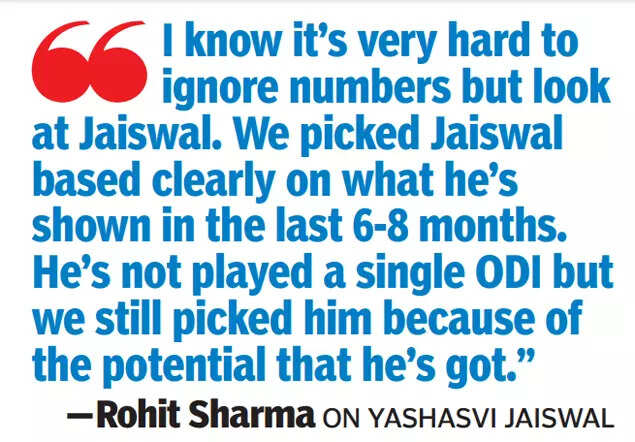 Meanwhile, the rise and rise of Yashasvi Jaiswal continues. The 23-year-old Mumbaikar's initiation into India's ODI squad was a no-brainer after he was one of the few bright spots to emerge from the tour of Australia. Showering praise on the dashing left-hander, Rohit said, "Sometimes, I know it's very hard to ignore numbers but look at Jaiswal. We picked Jaiswal based on clearly what he's shown in the last 6-8 months. He's not played a single ODI, but we still picked him because of the potential that he's got," he said.