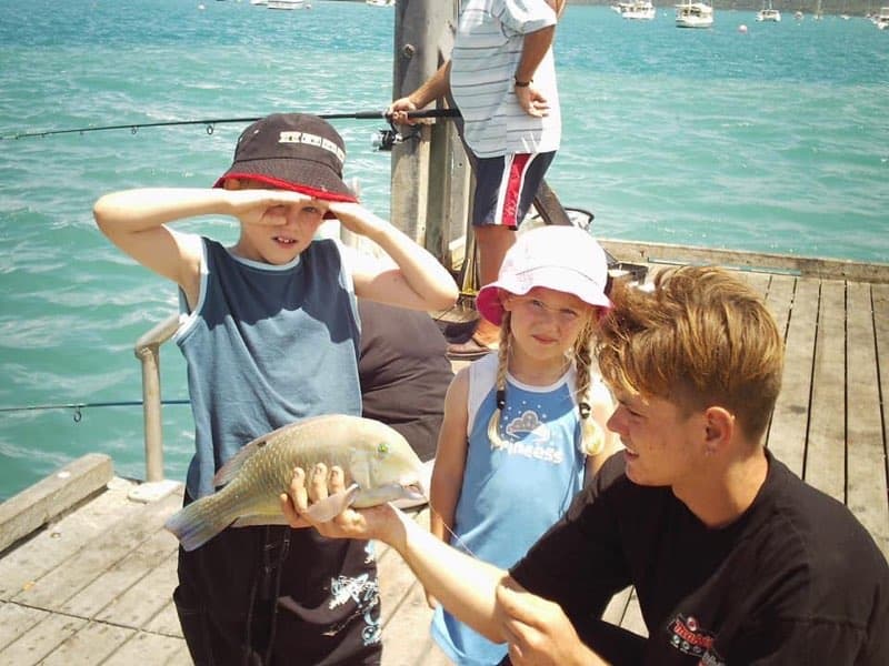 Jay Brogden helps his young niece to fish in the Whitsundays, in the year leading up to his death. (Supplied: Gina Merritt )