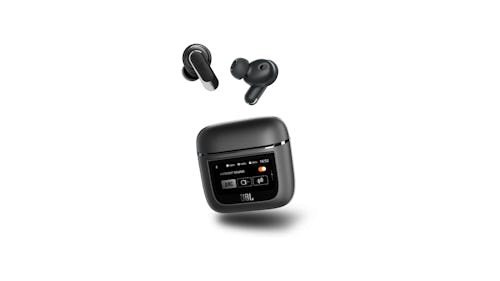 The 1.45-inch LED “touch display” will probably be most useful for adjusting the settings on your wireless earbuds. JBL says you can “manager your music” and “customize your earbuds,” and the images the company shared show a toggle for ANC and an ambient sound mode accessible on the display, along with the current battery life and time.