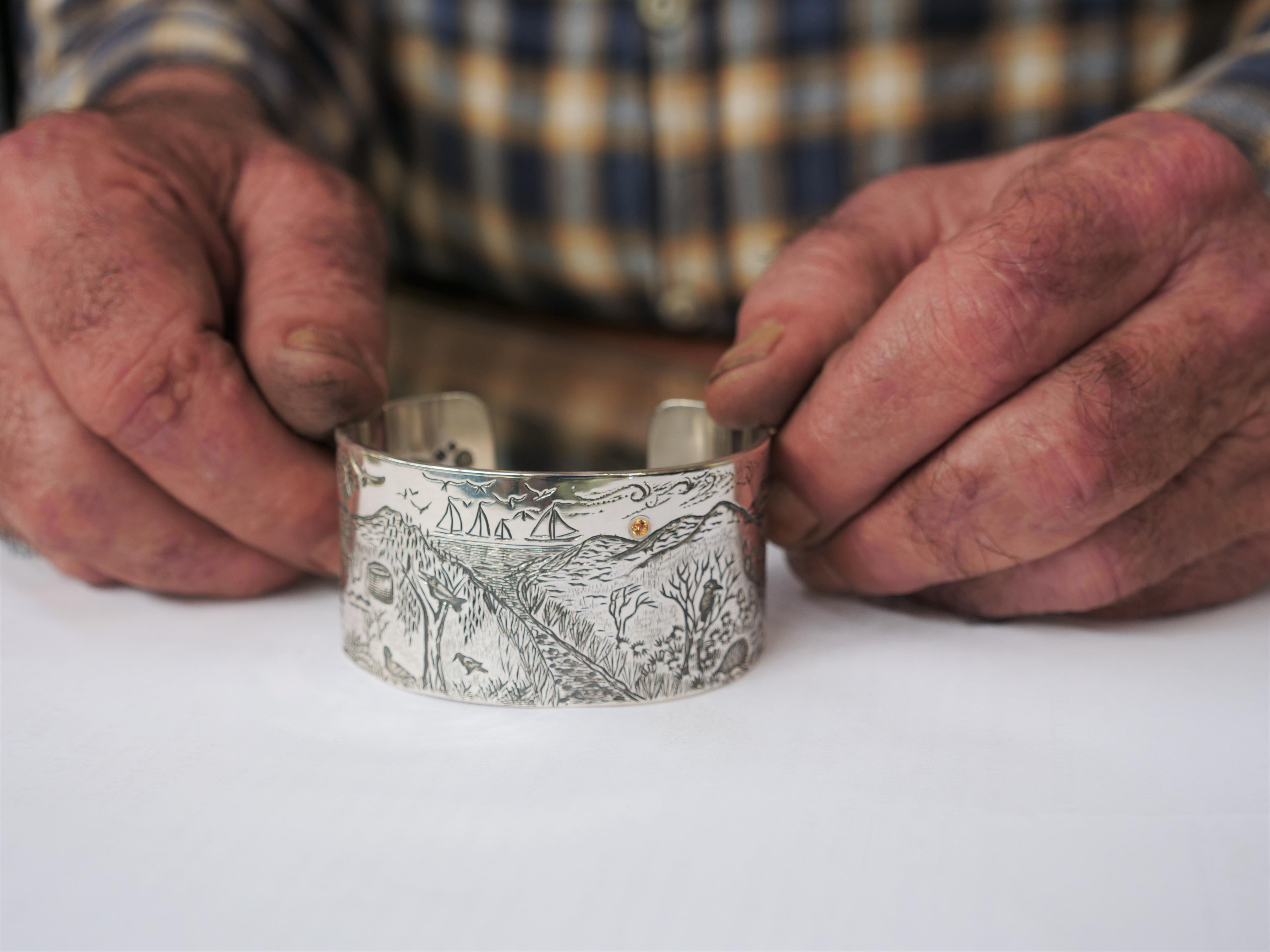 As well as hand engraving background details and carved landscapes into each piece, Mr Miller explores many more jewellery techniques outside of his unique stamps.