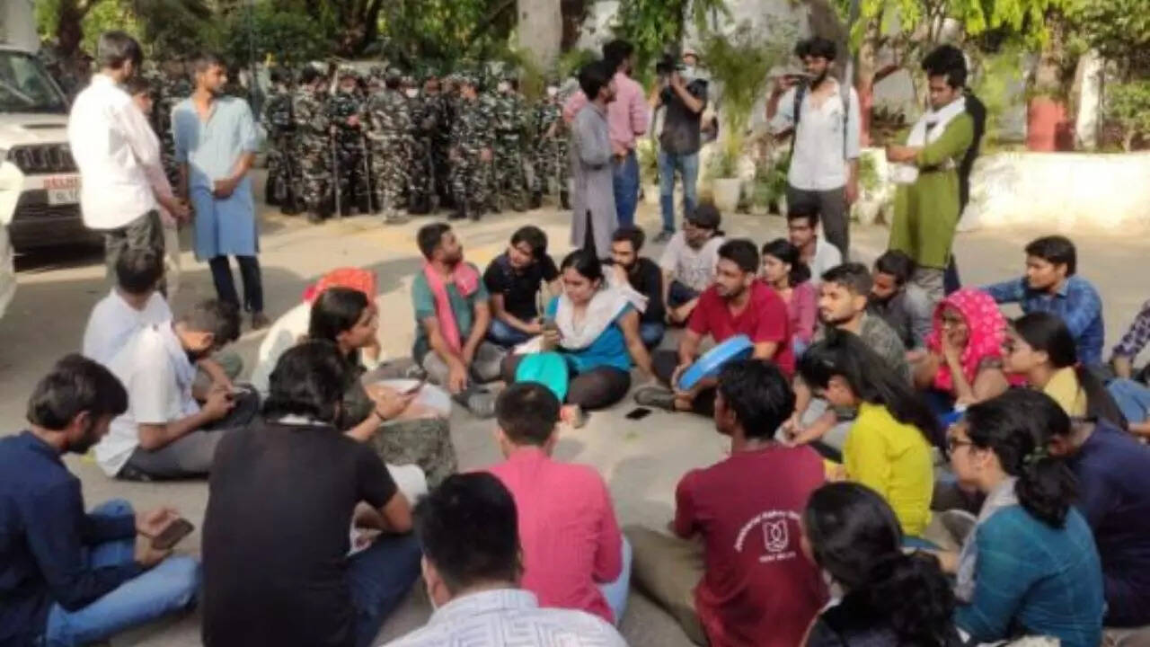 The protesting students had gathered near the police headquarters demanding the arrest of RSS-affiliated Akhil Bharatiya VidhyartHi Parishad (ABVP) members.