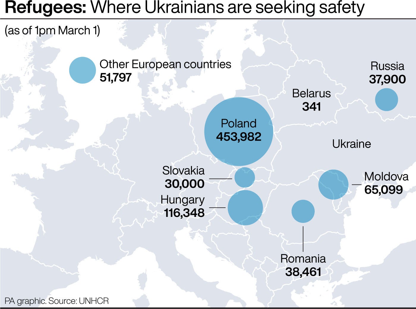 The United Nations’ refugee agency believes around 874,000 people have fled Ukraine but that figure is soon expected to reach a million.