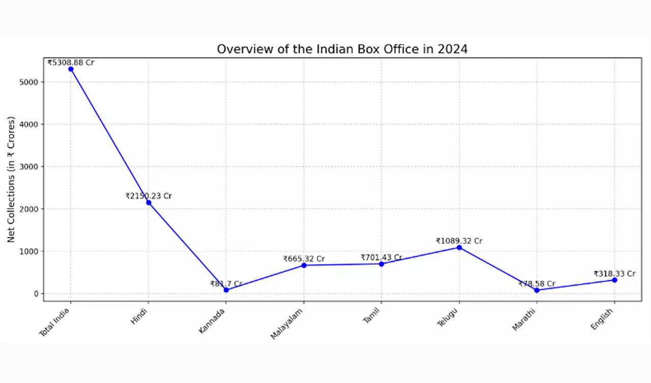 English films, while not leading the Indian box office in 2024, have maintained a significant presence, securing the 5th position among all languages in terms of net collections. The Rs 318.33 Cr generated from 78 releases highlights the continued interest of Indian audiences in Hollywood cinema, despite the dominance of regional films.