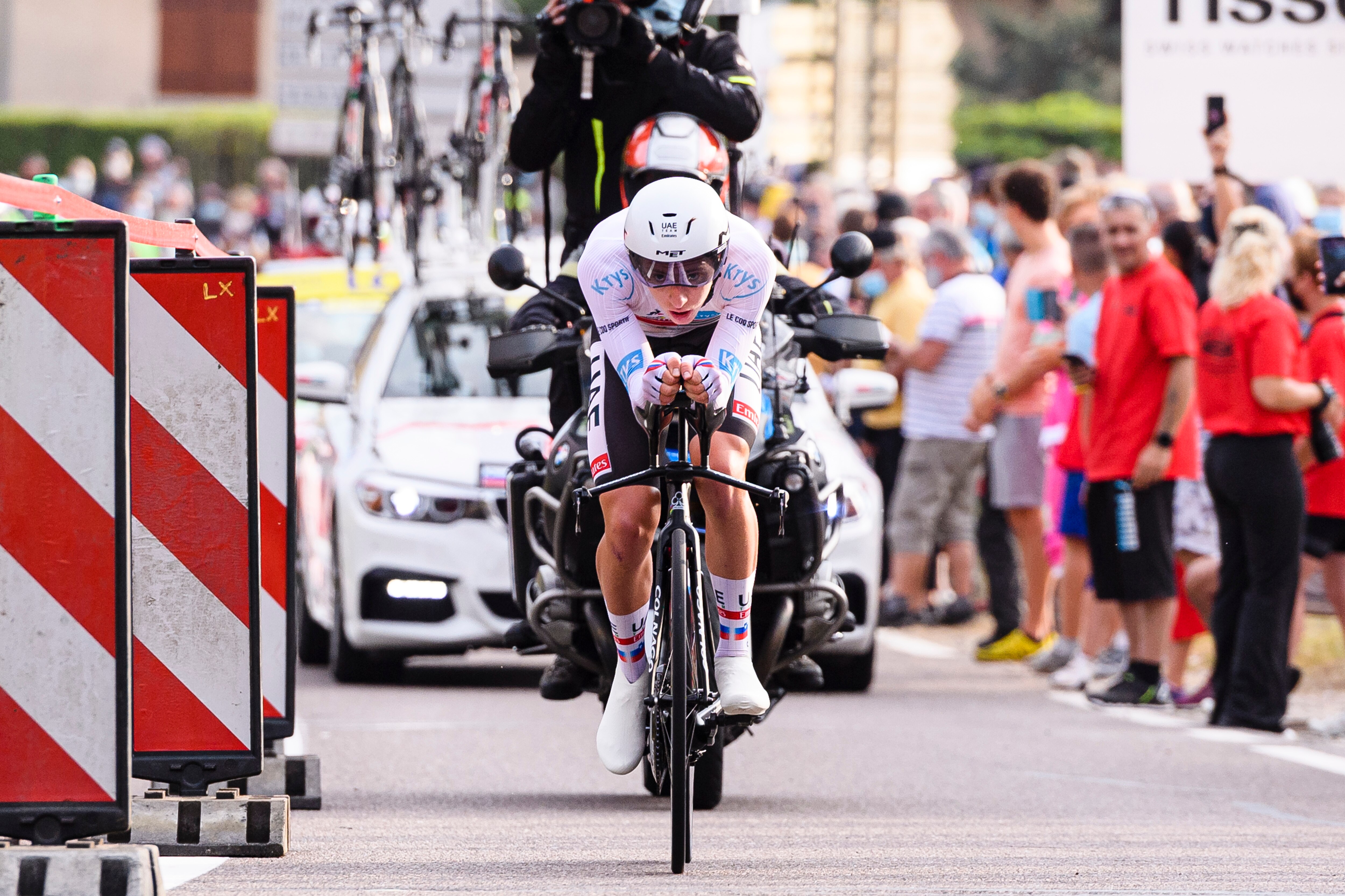 Ironically, it was he who still had a teammate with him, Brandon McNulty, inside the final 10 kilometres of the 129.7km test. McNulty, who is not usually Pogačar's last man, set the pace up until about the final 550m.