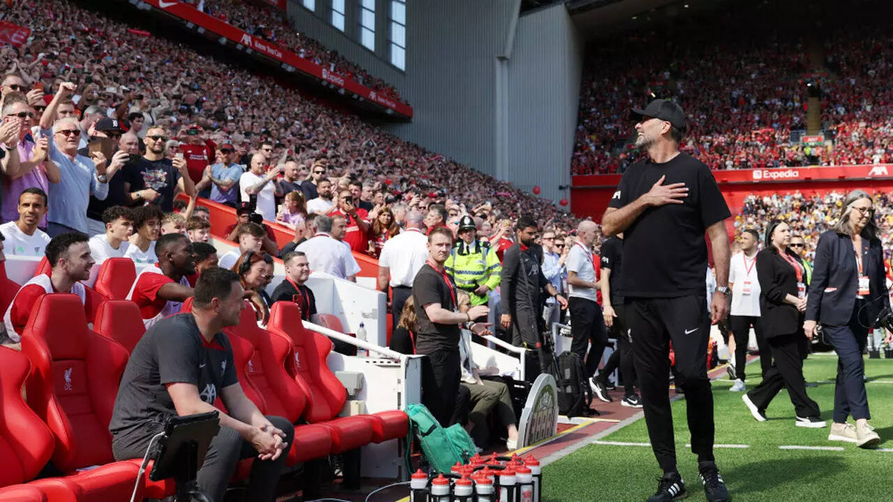 Jurgen Klopp received a heartfelt reception from home fans at Anfield as he walked out for his final match as Liverpool manager on Sunday. The German is bidding farewell to his nine-year tenure in charge of the Merseyside club following their last Premier League game of the season against Wolves.