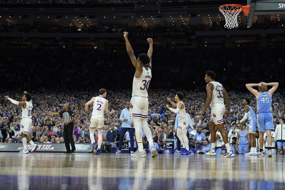 After falling behind by as much as 16 in the first half, the Jayhawks outscored the Tar Heels 47-29 in the second half and completed the largest comeback in college championship game history, at one point going on a 12-1 run.