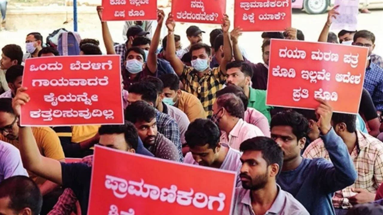 Raghavendra is accused no 22 in the FIR registered by CID police at High Grounds police station in Bengaluru on April 30. He was arrested after a report from the Forensic Science Laboratory (FSL) confirmed carbon copies of his optical marks recognition (OMR) sheets were found to be tampered with. Sources say Raghavendra had scored 144 marks out of 200.