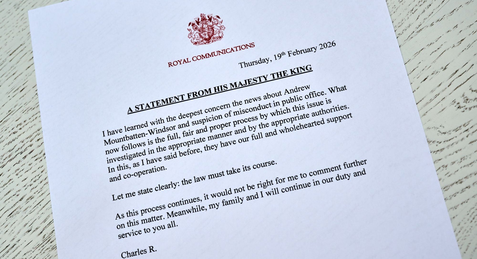 Charles pledged to support the police investigation into Andrew Mountbatten-Windsor’s relationship with paedophile Jeffrey Epstein.