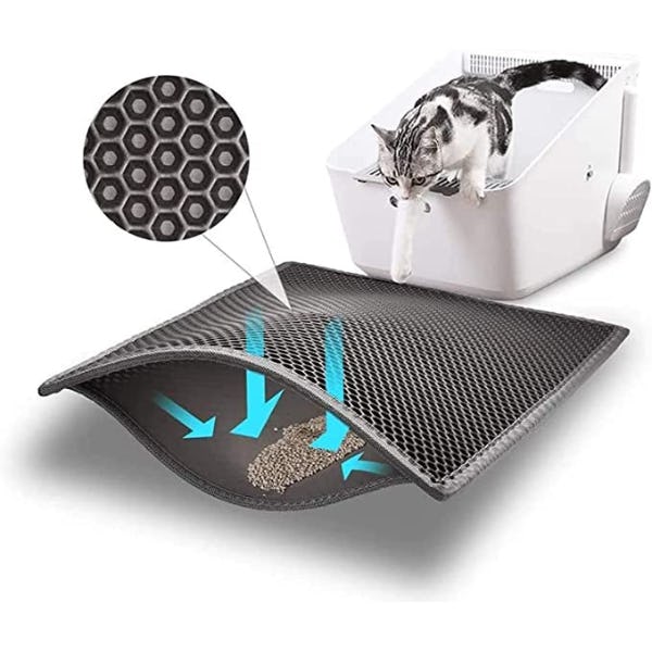 Love the cat but don’t love the litter box? This cat litter trapper mat makes that mess a little easier to handle by catching litter that gets tossed and tracked outside the box under its clever, honeycomb mesh upper layer. To clean up the litter, pick up the mat, pop it open, and dump the litter back into the box.