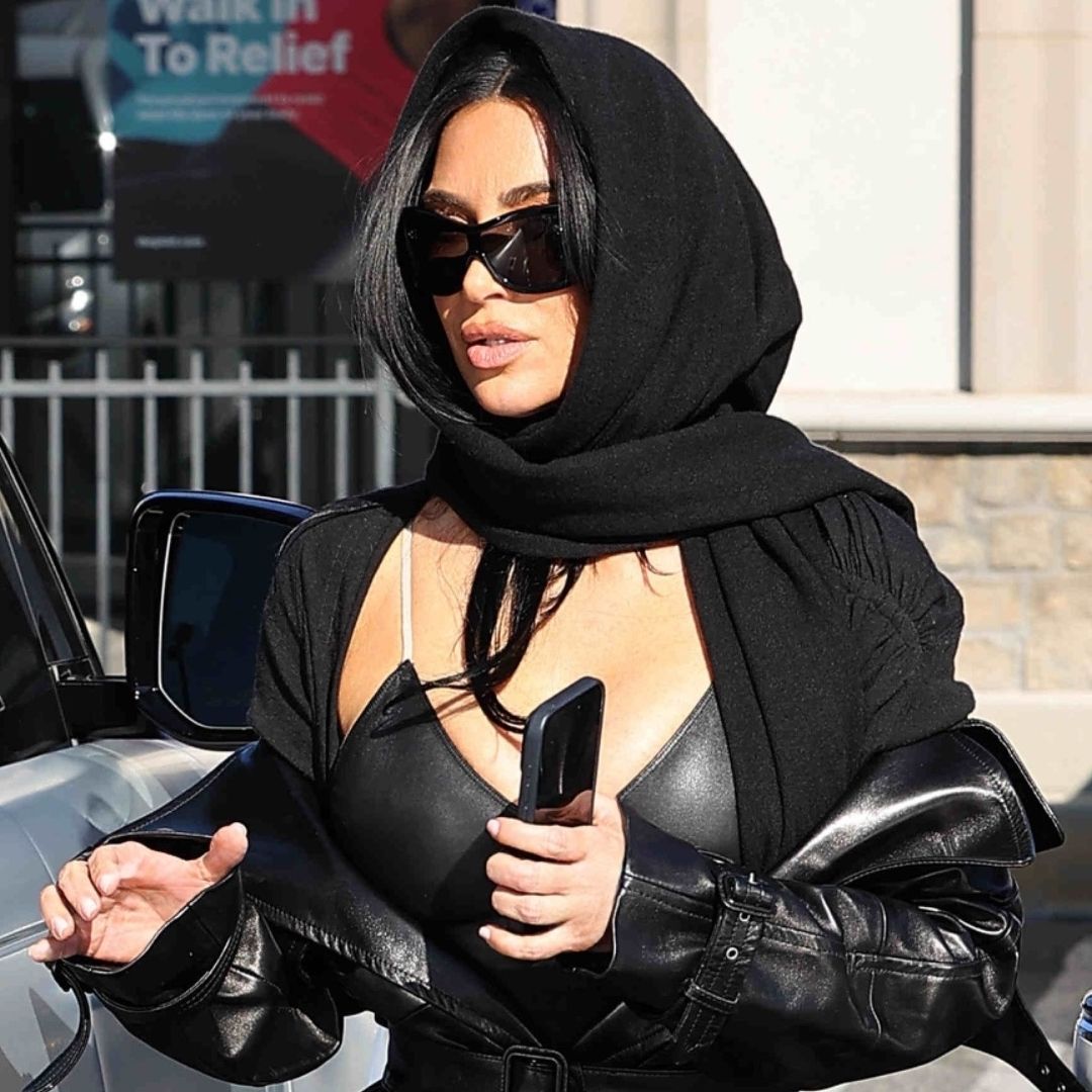 Kim Kardashian can already make news on her own, but adding rumored love interest Lewis Hamilton into the equation takes the intrigue to a higher level. Naturally, she can't quite keep a low profile—especially not when she's styling a leather trench coat and peekaboo bra to run errands.