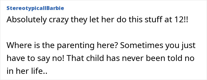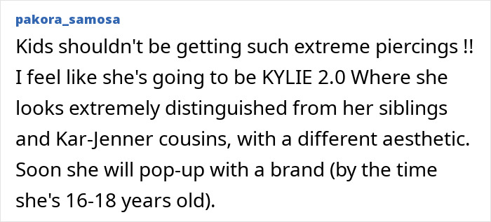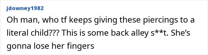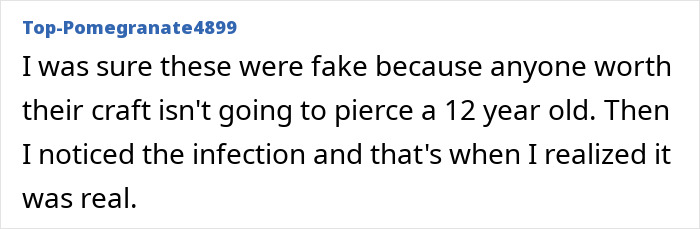 Others were even harsher, arguing that a 12-year-old getting body modifications, no matter how small, is crossing the line.